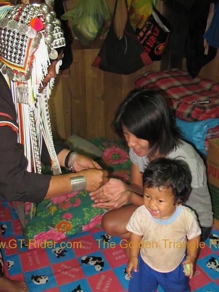 We were fortunate to meet an Akha guy who did a phd anthropology in California. He was a fountain of information as to what was going on during the whole proceedings and he has this year, for the first time ever, plotted the linage of the Akha families in the village. He explained that he has made charts for 147 families but the rest of the Akha in the village have become Christian.