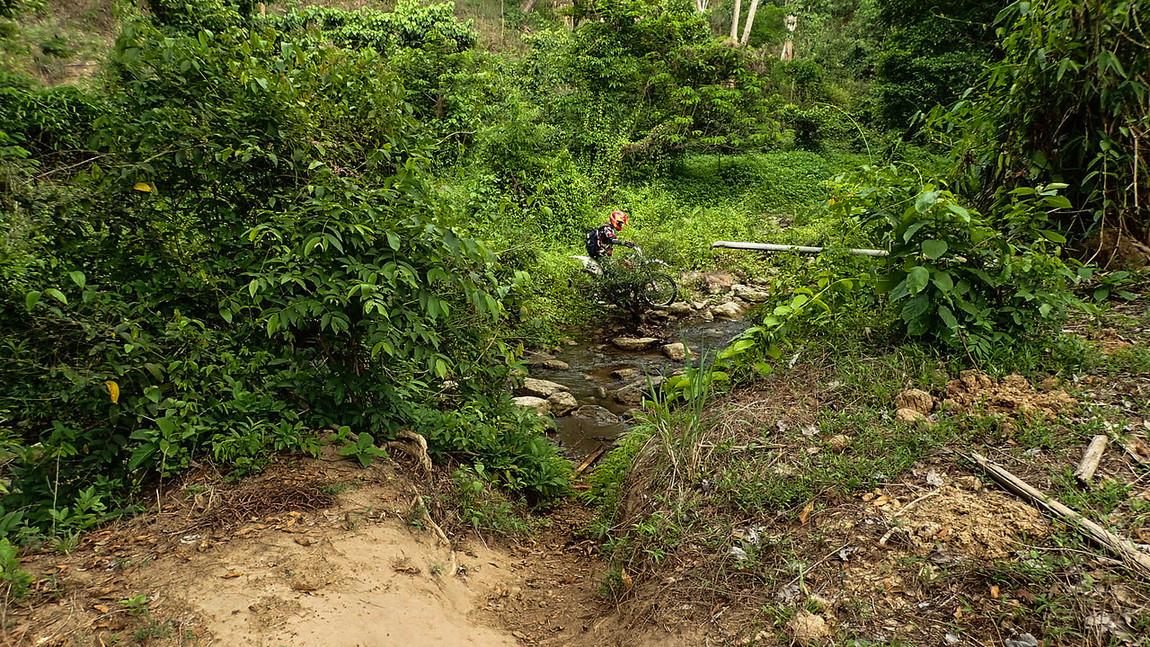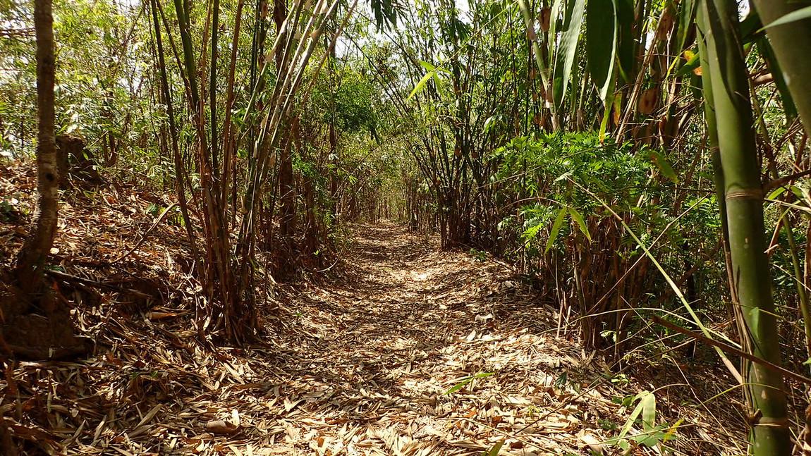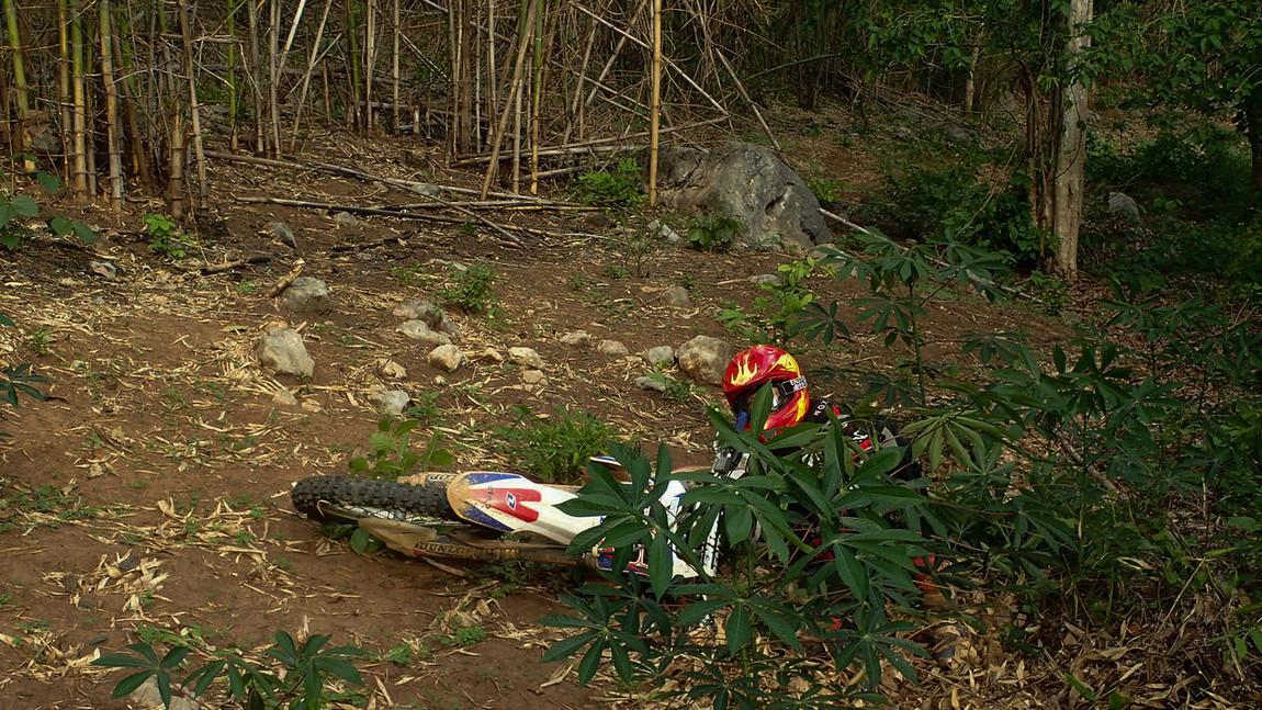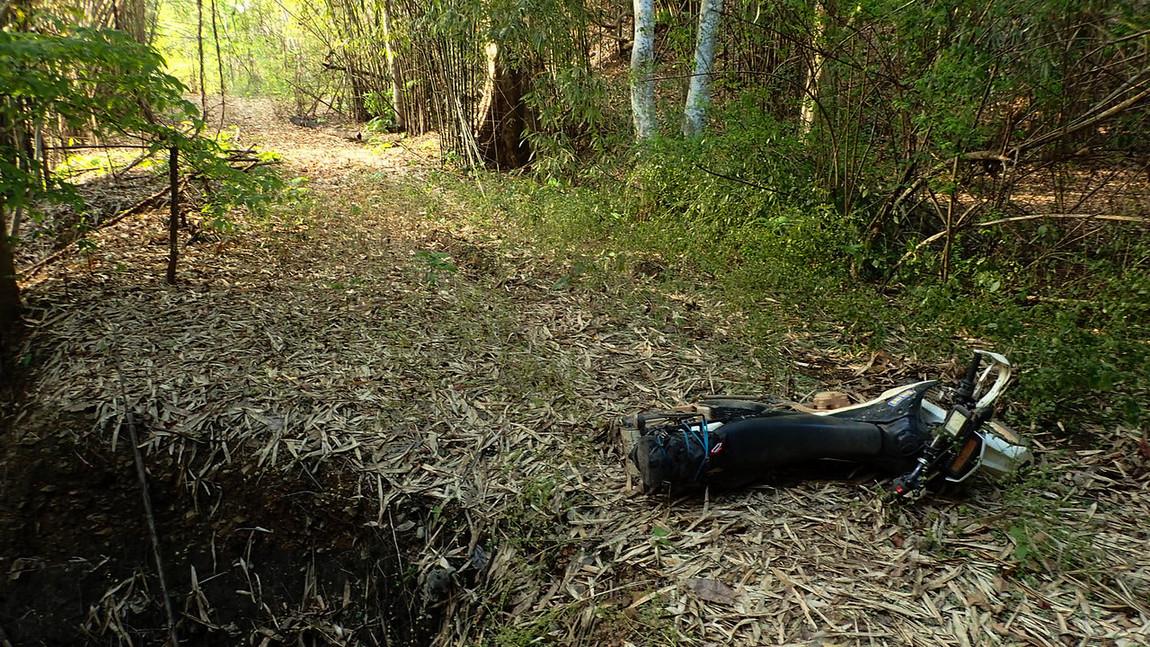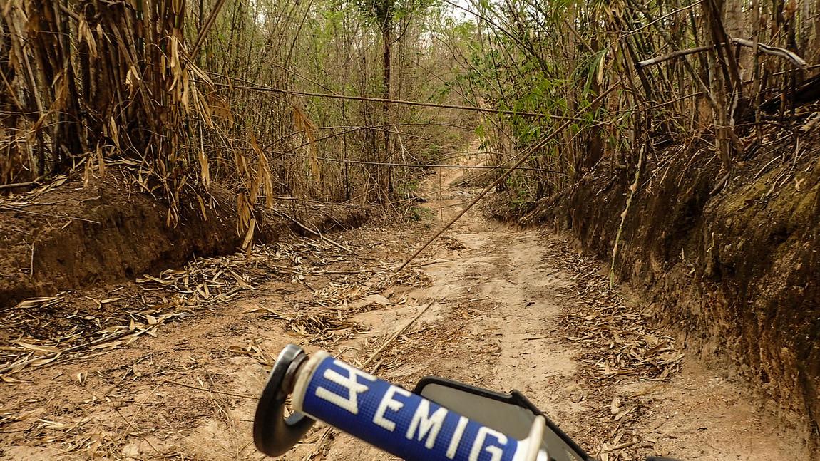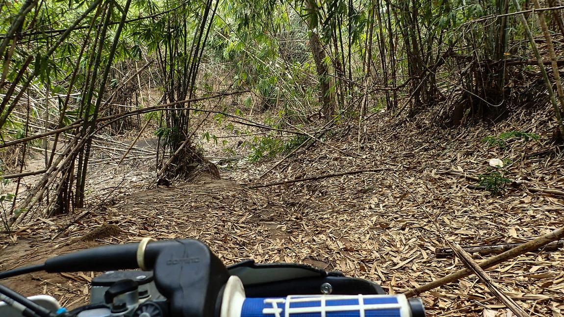 Thick Bamboo leaves.. hiding the ruts and branches.. Nice drop off to the right..