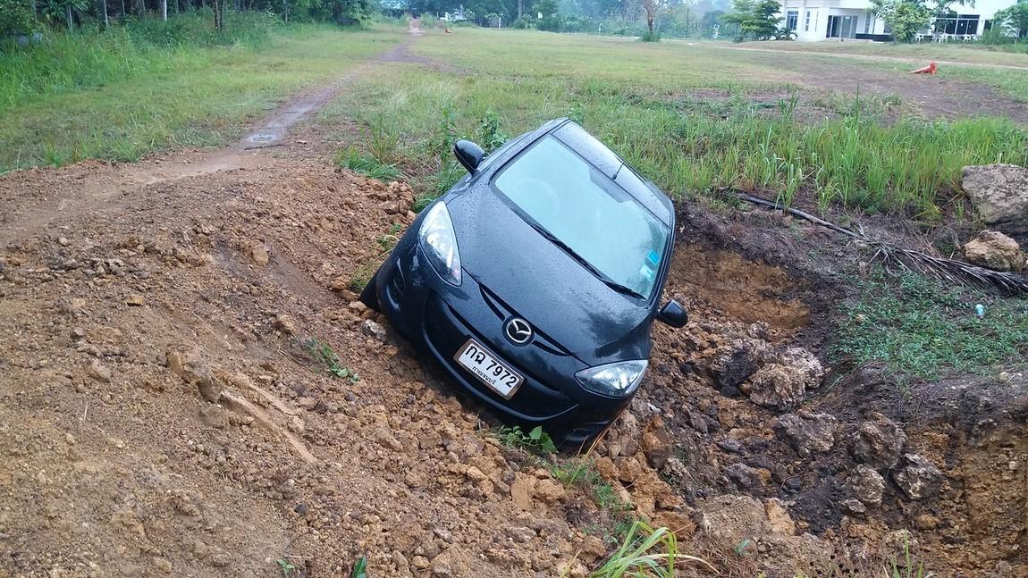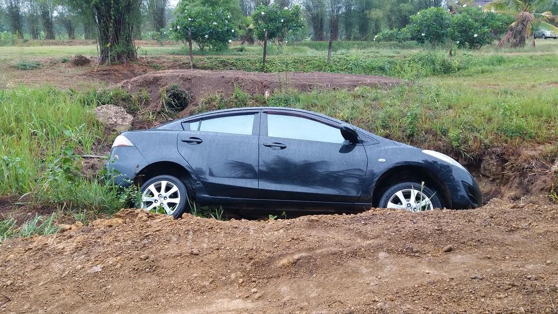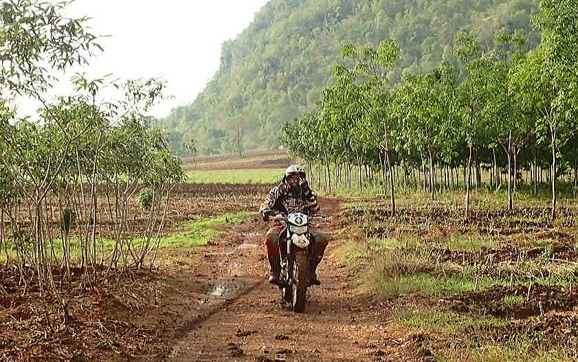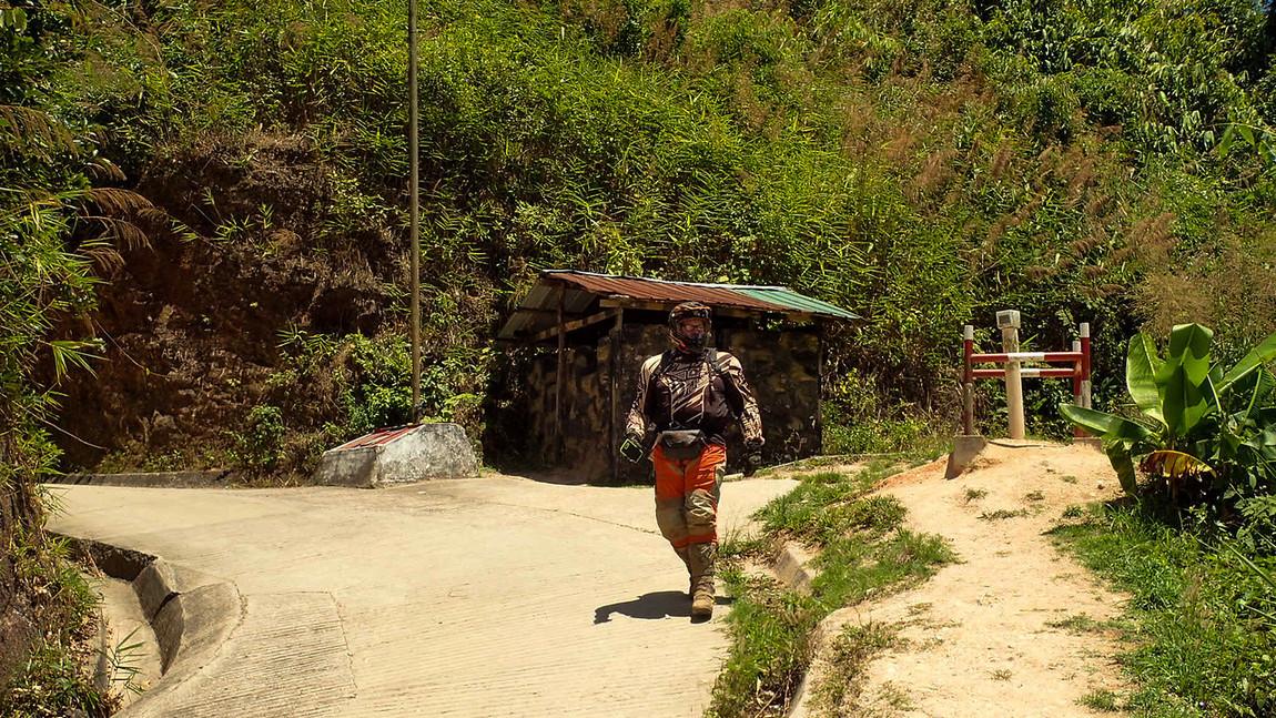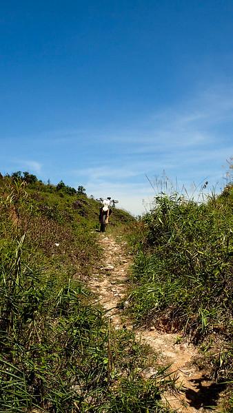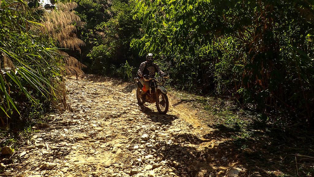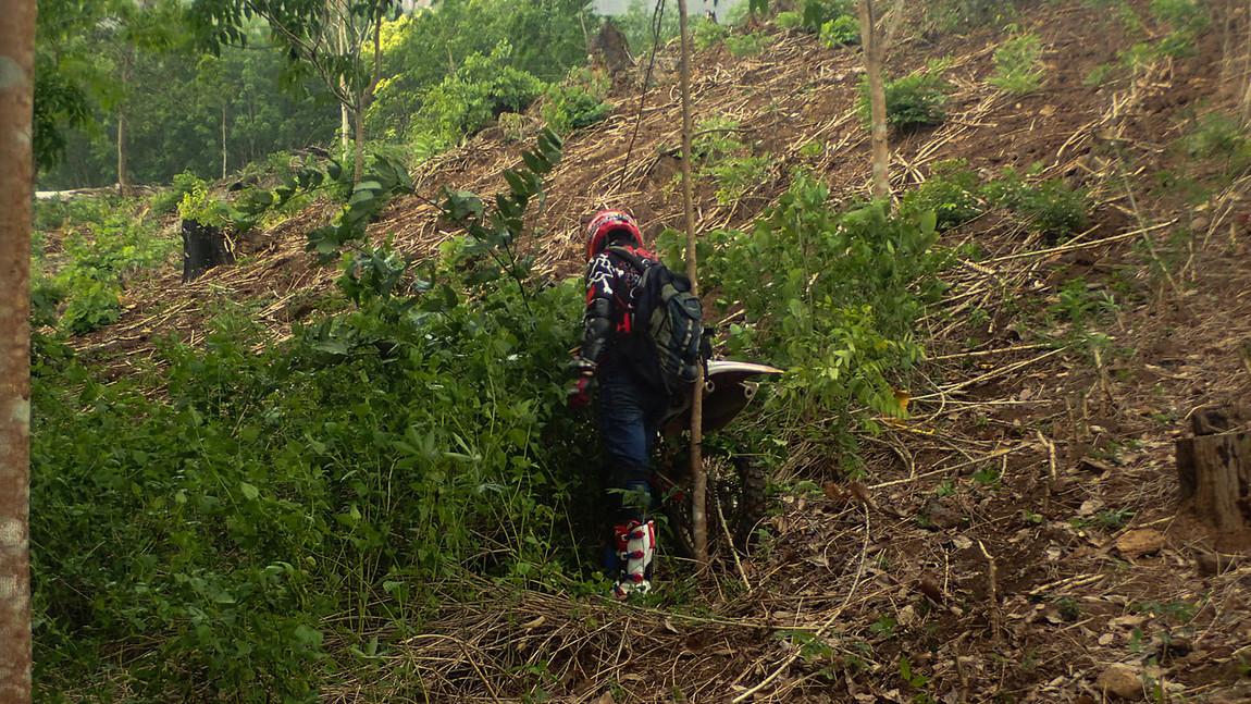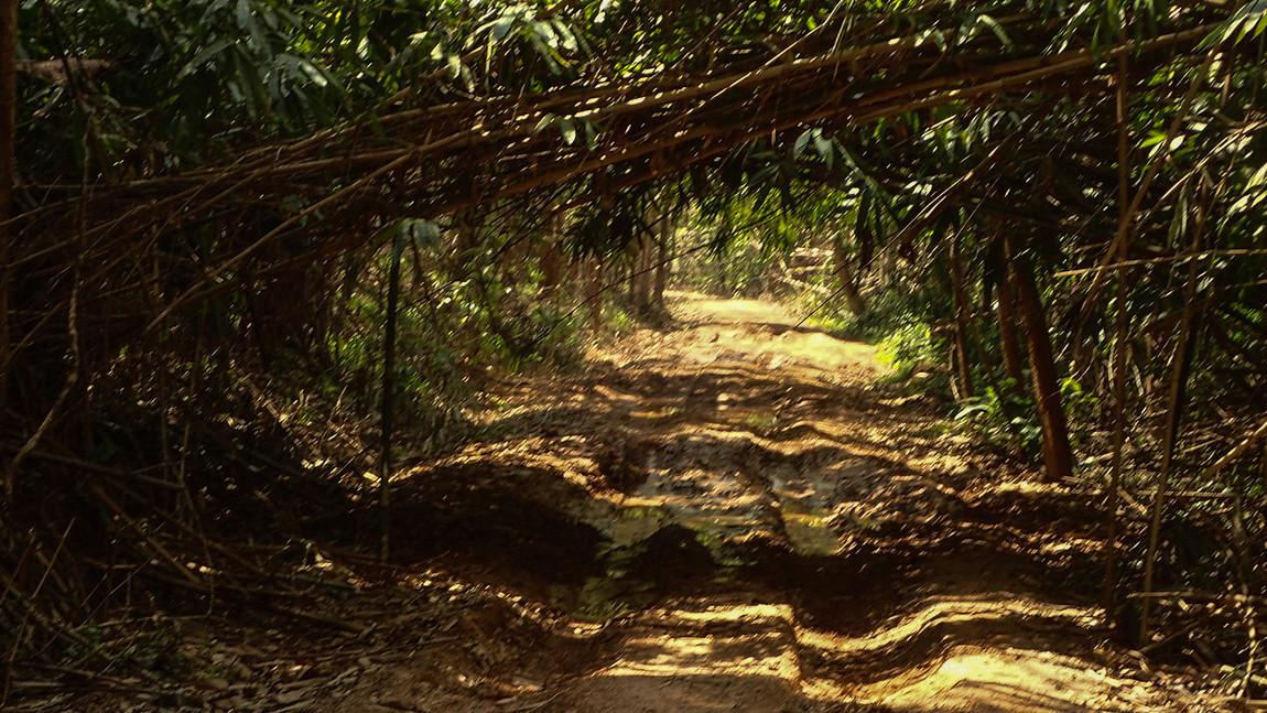Thick Bamboo leaves.. hiding the ruts and branches.. Nice drop off to the right..