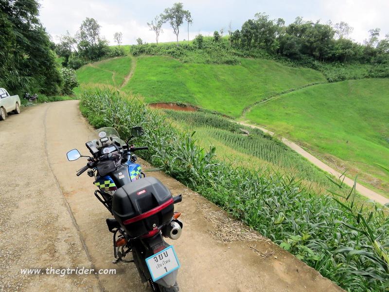 Wandering around the mountains with Lan & the CP Crew from Chiang Mai we split at Pha Tang, they headed along the ridge line towards Phu Chiu Fah & onward; my time was up, time to head back to Chiang Khong. Starting down the big hill I spotted what looked like a nice spanking new concrete road vanishing off into the distance. Curiosity got the better of me....so time for a meander....where the hell does that go?